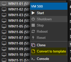 Sobald die Windows-VM vorbereitet ist, wird sie in Proxmox in ein Template umgewandelt. Dieses Template dient anschließend als Gold-Image für alle neuen Instanzen.